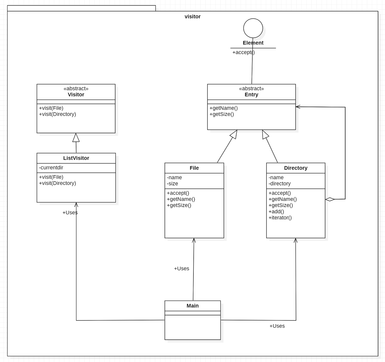 - Entry 클래스: 추상 클래스로 디렉토리 엔트리를 표현하며, Element 인터페이스를 실제 구현합니다.